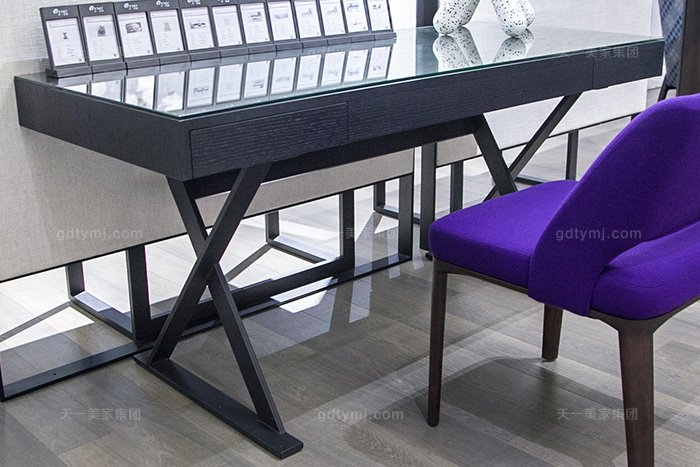 意大利轻奢极简家具黄瓜短视频下载实木烟熏黑橡色书桌椅